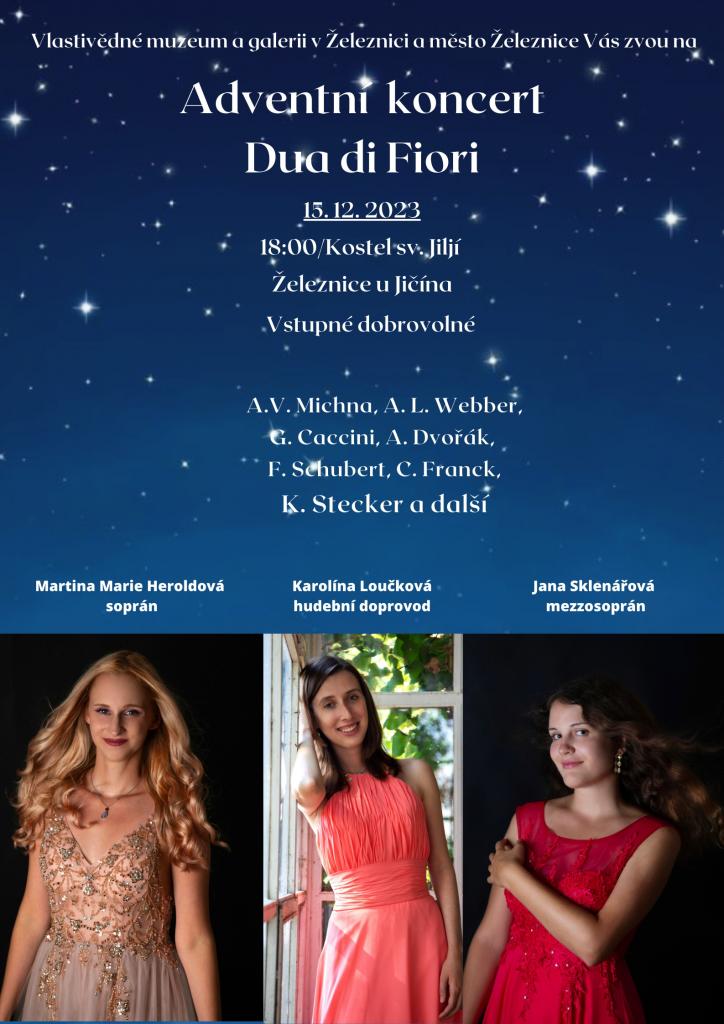 Účinkují: Martina Maria Heroldová (soprán), Karolína Loučková (hudební doprovod), Jana Sklenářová (mezzosoprán). Na koncertě zazní skladby A. V. Michny, A. L. Webbera, G. Cacciniho, A. Dvořáka, F. Schuberta, C. Francka, K. Steckera ad. Vstupné dobrovolné.