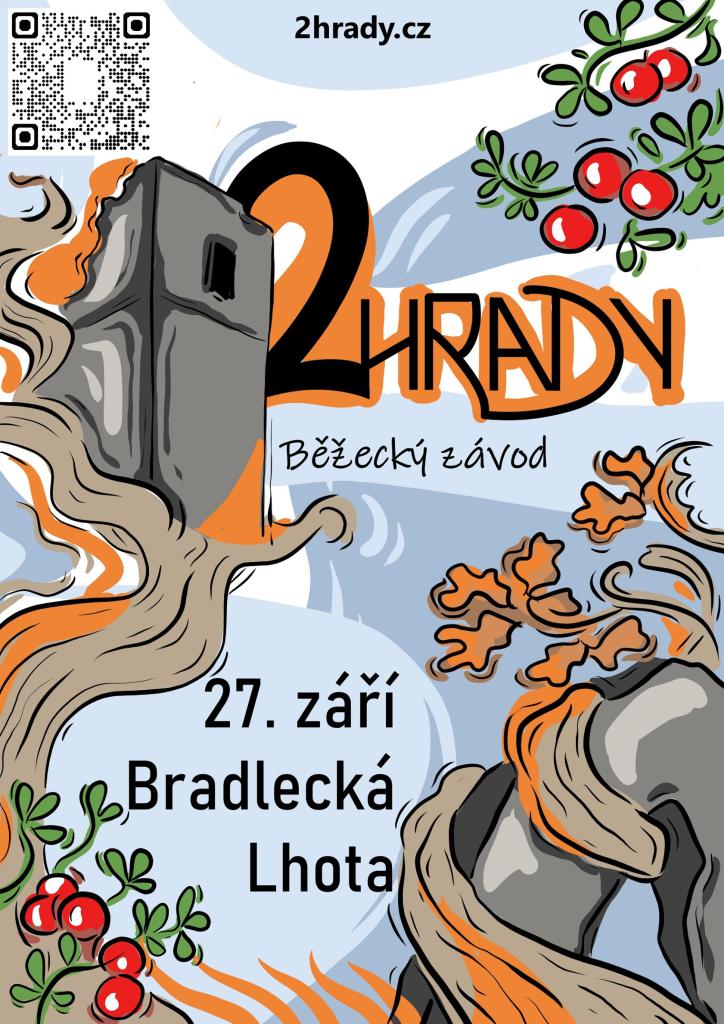 Zúčastněte se 14. ročníku běhu do vrchu přes dva hrady 2HRADY, který vás v sobotu 27. září zavede z Bradlecké Lhoty na hrady Bradlec a Kumrburk. Start hlavního závodu v 10 hodin, dětských od 10:05 do 10:40 hodin, prezence od 7:30 hodin v KD Bradlecká Lhota.