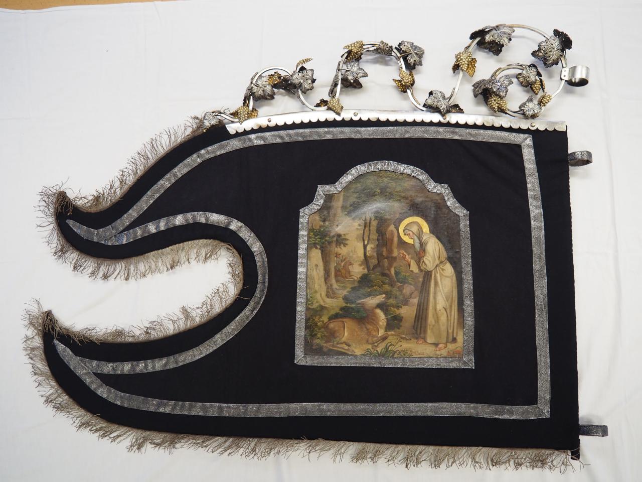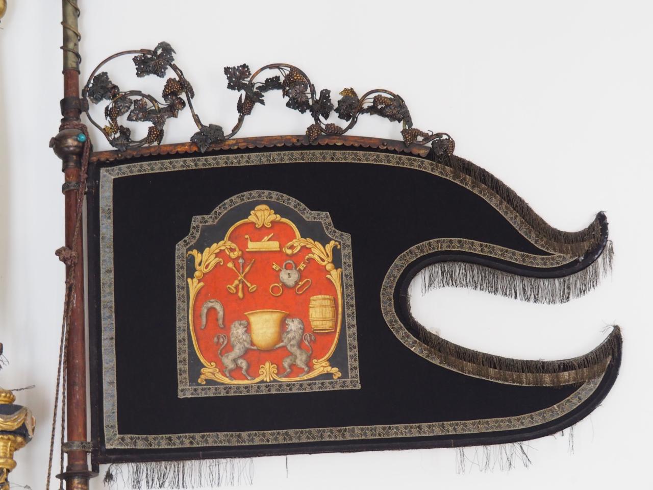 Korouhev se skládá z více materiálů, jako je textil, kov, dřevo, a z malovaných barevných obrazů na plátně. Z tohoto důvodu se na restaurátorské práci podílelo více odborníků specializovaných na určitý typ materiálu. Tato korouhev byla velmi poškozena, ale ruce šikovných restaurátorů jí vrátily její původní krásu.