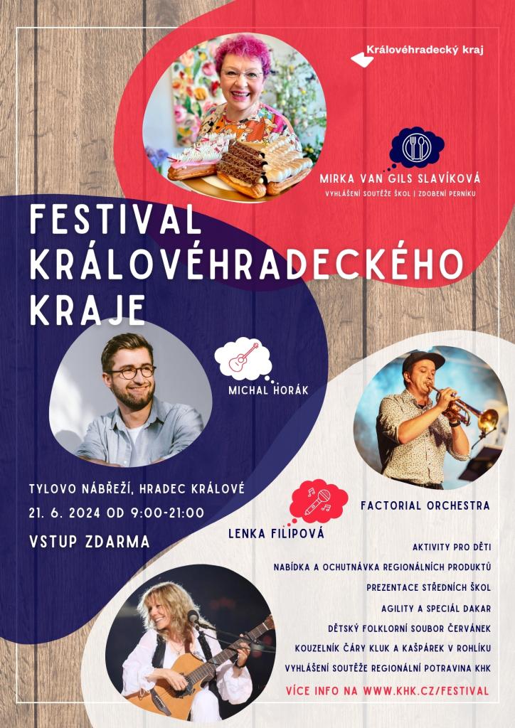 Srdečně vás zveme na Festival Královéhradeckého kraje, který se uskuteční v pátek 21. června 2024 od 9 hodin na Tylově nábřeží v Hradci Králové.