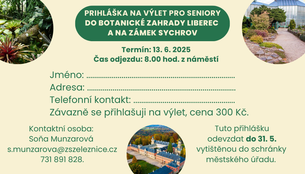 Vyplněnou přihlášku, kterou naleznete pro vytištění v příloze, odevzdejte do 31. 5. do schránky na městském úřadě, nebo ji zašlete na e-mail: s.munzarova@zszeleznice.cz.