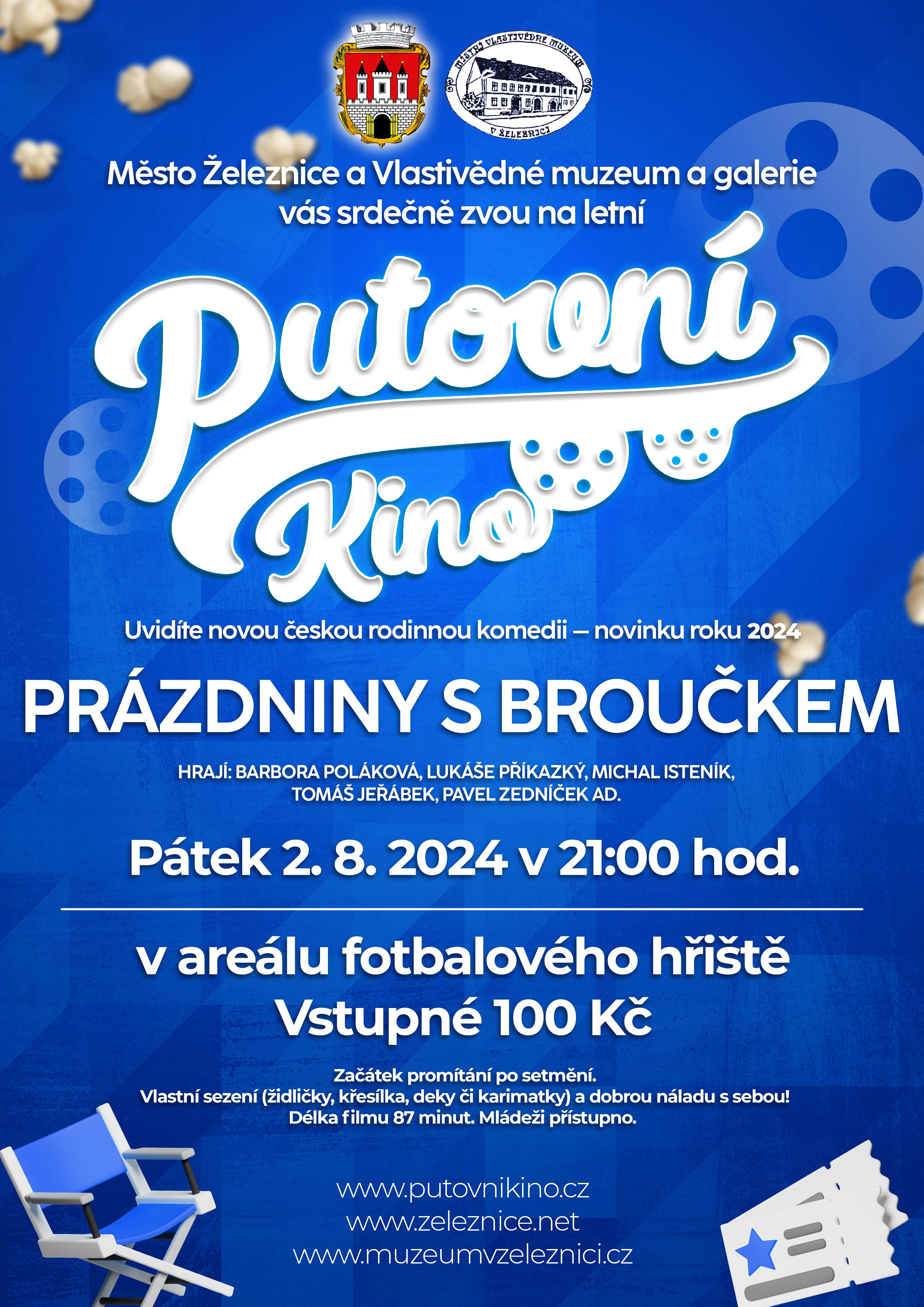 2. ročník letního promítání pod širým nebem. Diváci se mohou těšit na novou letní českou rodinnou komedii z roku 2024 Prázdniny s Broučkem. Vstupné je 100 Kč. Vlastní sezení (židličky, křesílka, deky či karimatky) a dobrou náladu s sebou!