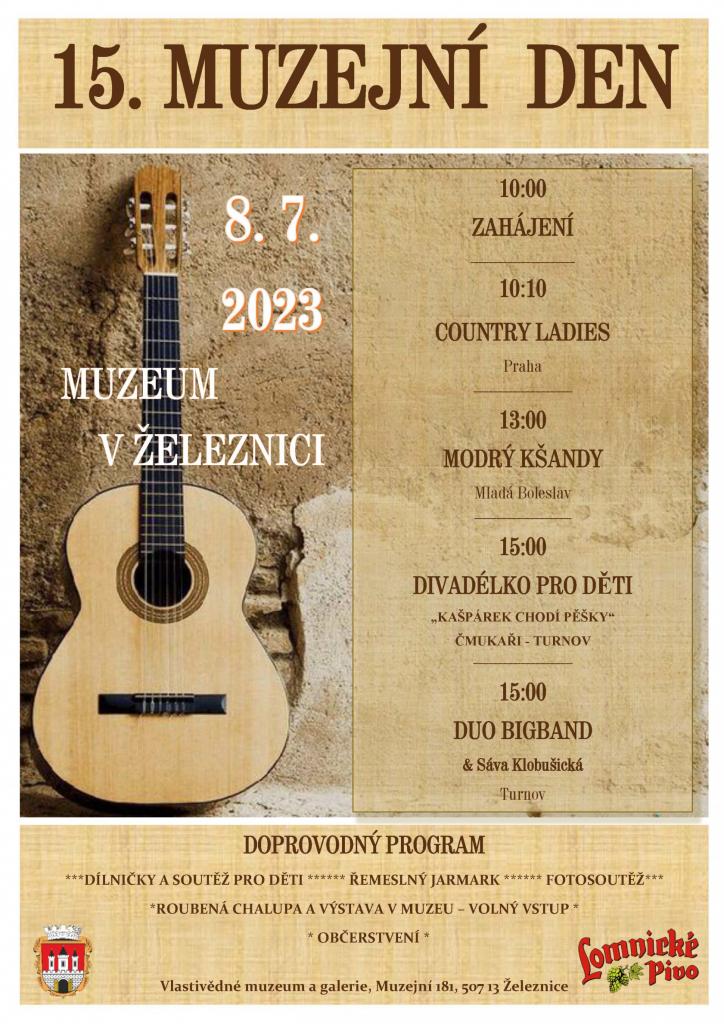 Srdečně vás zveme v sobotu 8. července od 10 do cca 16:30 hodin na 15. ročník tradiční letní akce MUZEJNÍ DEN. Připraven je bohatý kulturní program: zahájení (10 hodin), řemeslný jarmareček, koncerty – Country Ladies (10:10 hodin), Modré kšandy (13 hodin), Duo BigBand Turnov a Sáva Klobušická (od 15 hodin), dílničky a soutěže pro děti, volný vstup do expozice roubené chalupy a komentovaná prohlídka ve 12 hodin, volný vstup na prodejní výstavu kožených obrazů a kabelek Blanka Mudrová – Kůže a stín, loutková pohádka Kašpárek chodí pěšky (Čmukaři Turnov, 15 hodin), fotosoutěž Každý jsme fotografem (vyhlášení vítězů v 16 hodin), chutné občerstvení ad. Vstup volný.