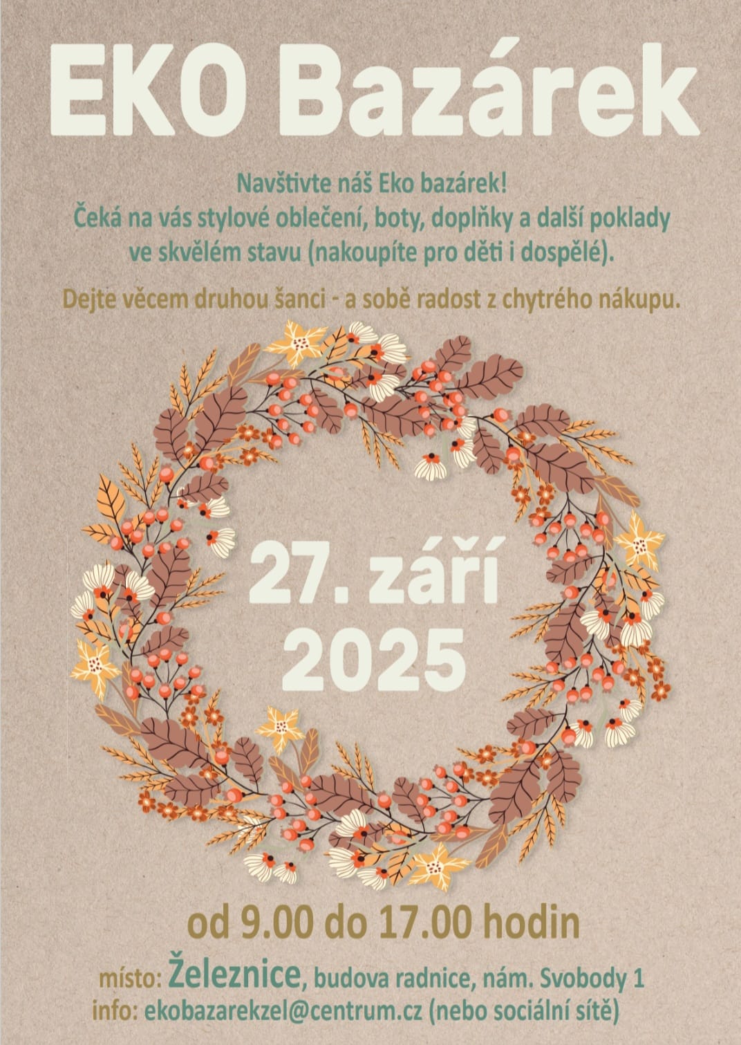 Více informací na ekobazarekzel@centrum.cz (nebo sociální sítě).