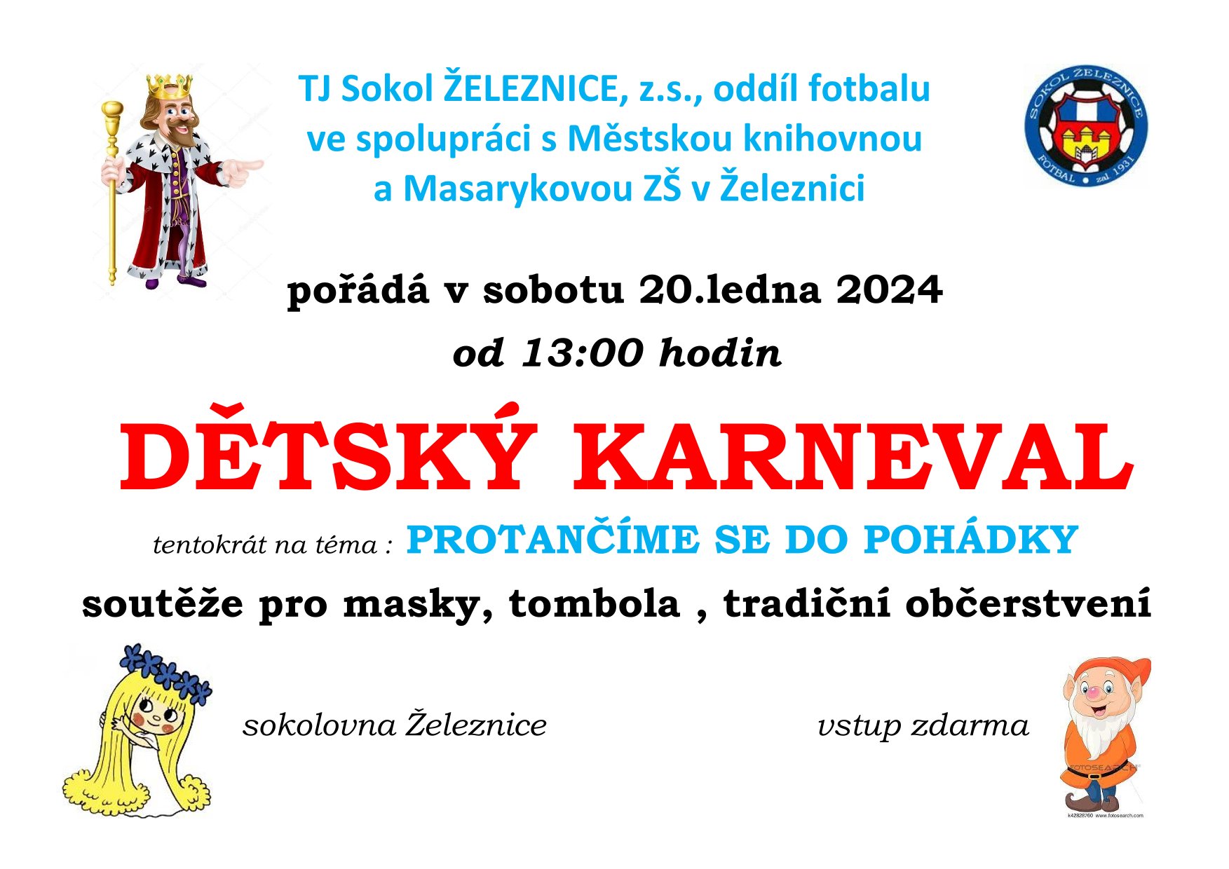 Karneval společně s fotbalovým oddílem TJ Sokol Železnice tradičně spolupořádá Místní knihovna Železnice a Masarykova základní škola a mateřská škola v Železnici.