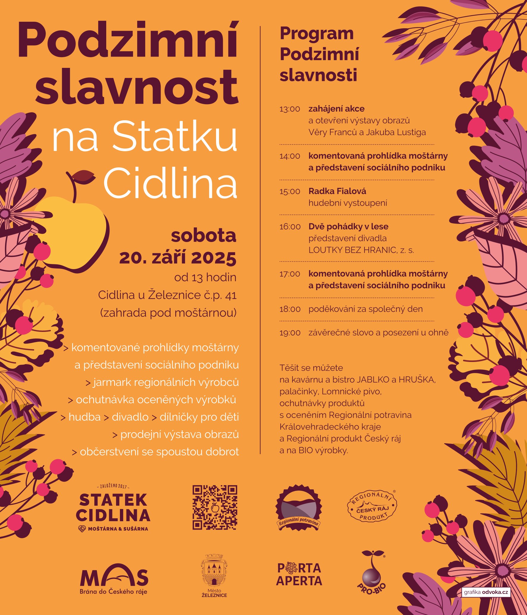 Připraven je bohatý program včetně jarmarku s účastí místních i regionálních prodejců, chutné občerstvení, hudební i divadelní program, dílničky pro děti i otevřené dveře moštárny. Více informací o programu na plakátě v příloze.