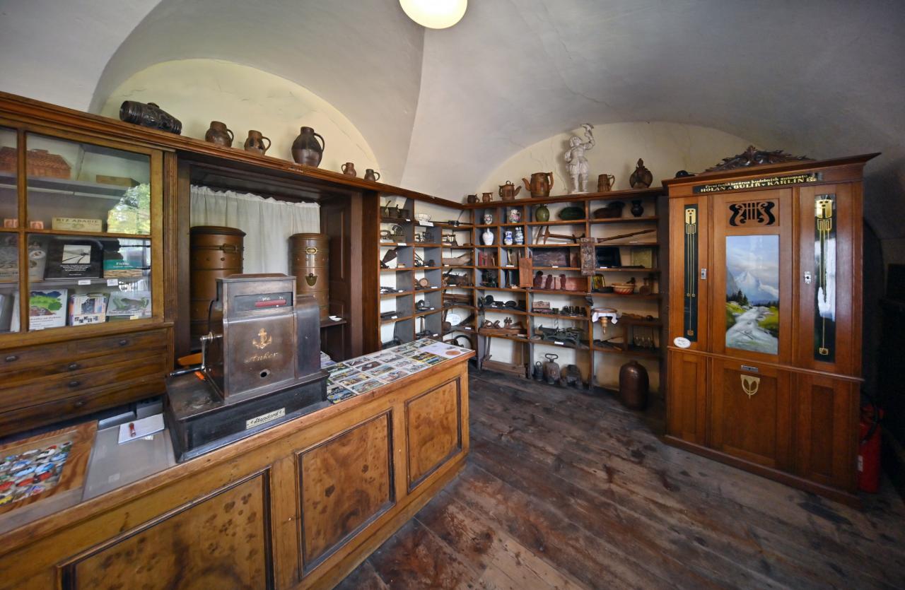 V dobovém kupeckém krámku jsou ke koupi četné suvenýry.