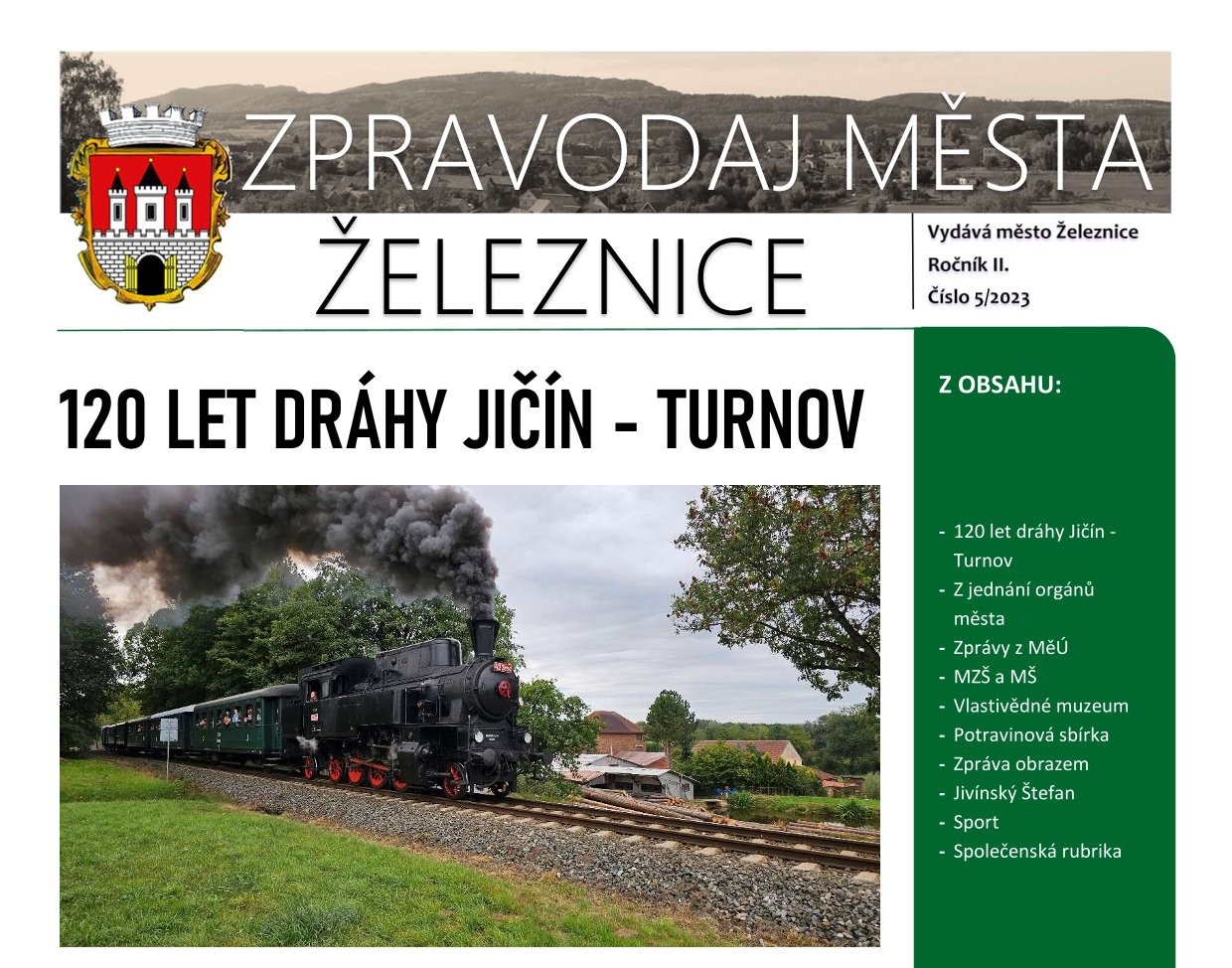 Přečtěte si nejnovější číslo Zpravodaje města Železnice č. 5/2023, která právě vyšlo. Je k dispozici níže v odkazu nebo na tomto městském webu v rubrice Zpravodaj.