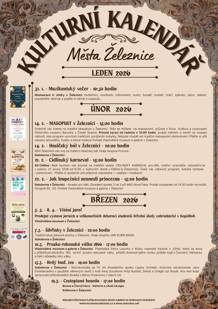 Pokud pořádáte nebo připravujete nějakou akci v Železnici a okolí, dejte nám prosím s předstihem vědět na e-mail breuerova@zeleznice.net, aby mohla být akce zařazena do kalendáře akcí na webových stránkách města Železnice a dále do tištěné verze plakátu s kulturním přehledem a také propagována prostřednictvím mobilního rozhlasu a FB města. Děkujeme.