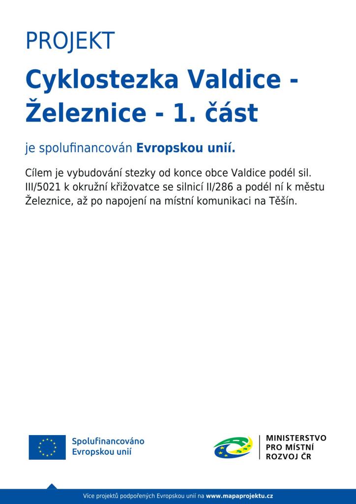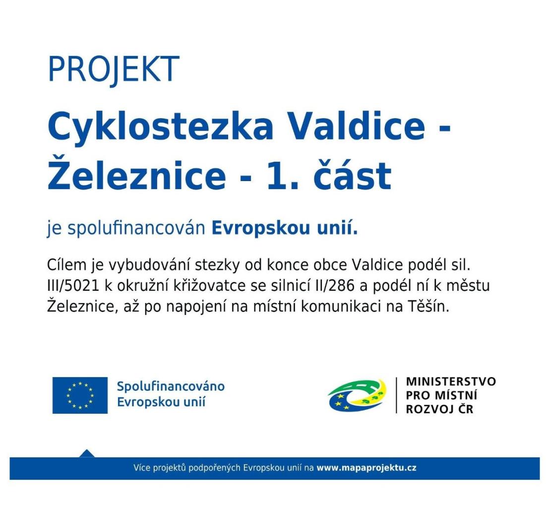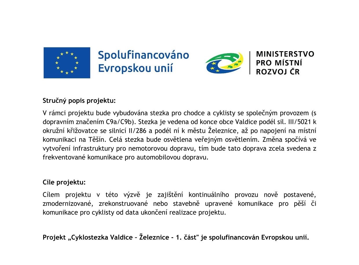 Projekt „Cyklostezka Valdice – Železnice - 1. část" je spolufinancován Evropskou unií.
