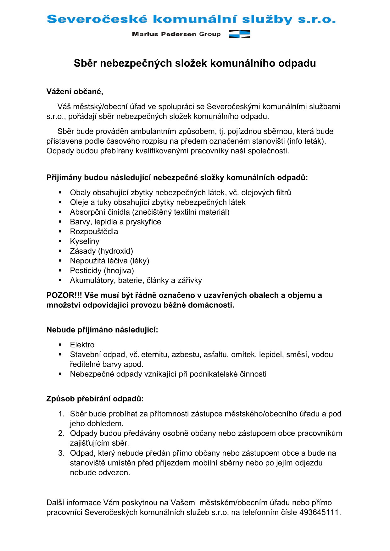 V neděli 11. května 2025 od 13:05 do 13:20 hodin proběhne na náměstí Svobody v Železnici před městským úřadem sběr nebezpečných složek komunálního odpadu. Sběr proběhne ambulantním způsobem, tj. pojízdnou sběrnou, která bude přistavena na předem označeném místě. Více informací naleznete v přílohách.