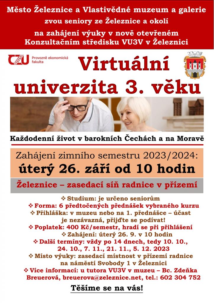 Více informací o studiu v zimním semestru 2023/2024 na webu města v sekci Život ve městě - Vzdělávání - VU3V.