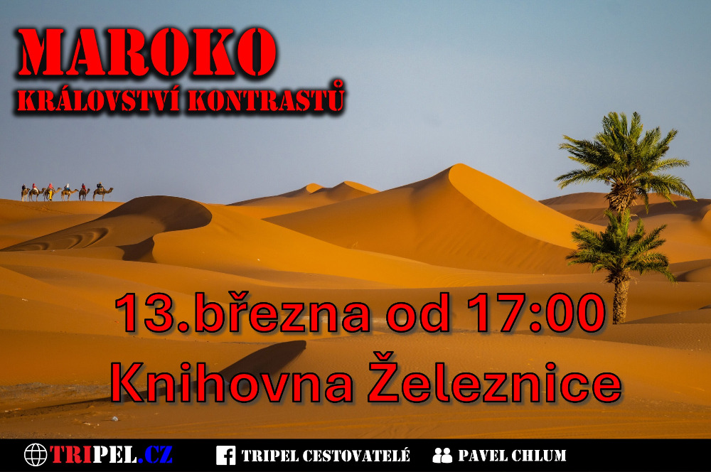 Tradiční jarní cestopisná beseda Pavla Chluma. Vydejte se na nezapomenutelnou cestu severní Afrikou s Pavlem Chlumem, který na svém 2300 km dlouhém dobrodružství prozkoumal fascinující krajinu a kulturu této úchvatné země.