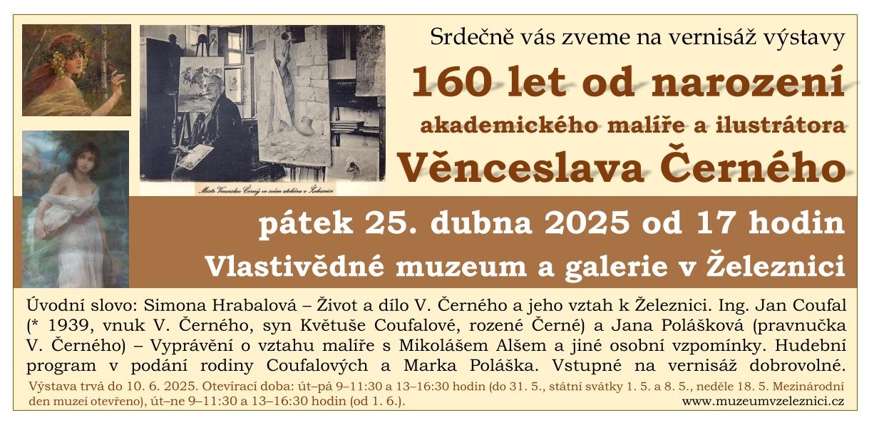 Výstava přiblíží tvorbu Věnceslava Černého (* 27. 1. 1865 – † 15. 4. 1936) a jeho vztah k Železnici – po stránce kulturní, politické i náboženské.