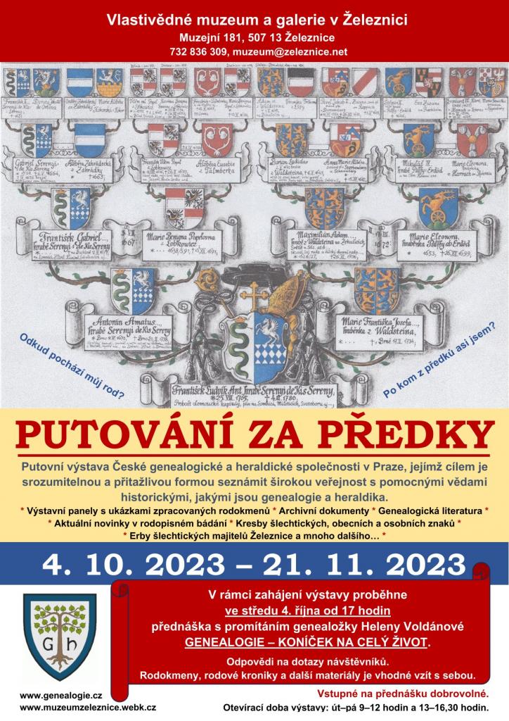 Putovní výstava České genealogické a heraldické společnosti v Praze, jejímž cílem je srozumitelnou a přitažlivou formou seznámit širokou veřejnost s pomocnými vědami historickými, jakými jsou genealogie a heraldika. Návštěvníci výstavy spatří na řadě výstavních panelů ukázky zpracovaných rodokmenů, archivní dokumenty, genealogickou literaturu, aktuální novinky v rodopisném bádání, kresby šlechtických, obecních a osobních znaků nebo erby šlechtických majitelů Železnice a mnoho dalšího…