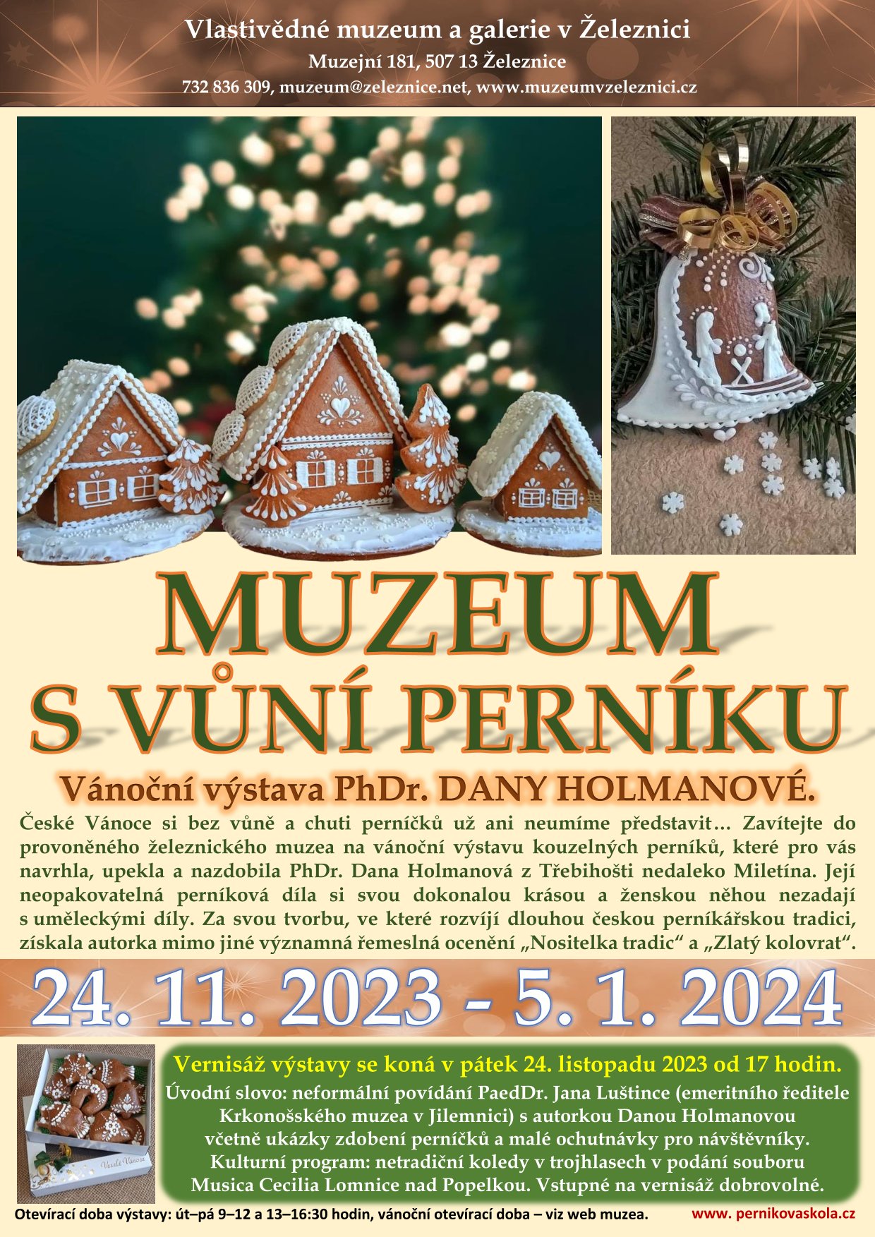 Úvodní slovo: neformální povídání PaedDr. Jana Luštince (emeritního ředitele Krkonošského muzea v Jilemnici) s autorkou Danou Holmanovou včetně ukázky zdobení perníčků a malé ochutnávky pro návštěvníky.