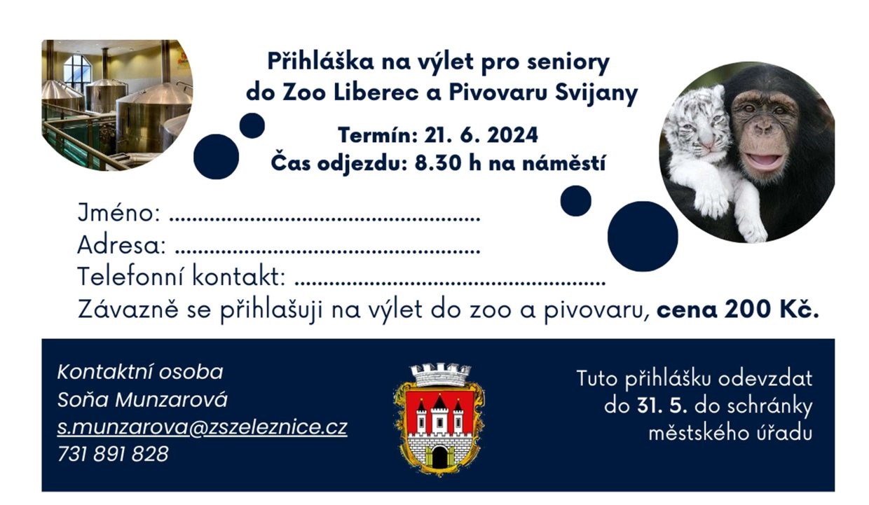 Cena: 200 Kč (vybírá se v autobusu), ostatní náklady platí město Železnice.