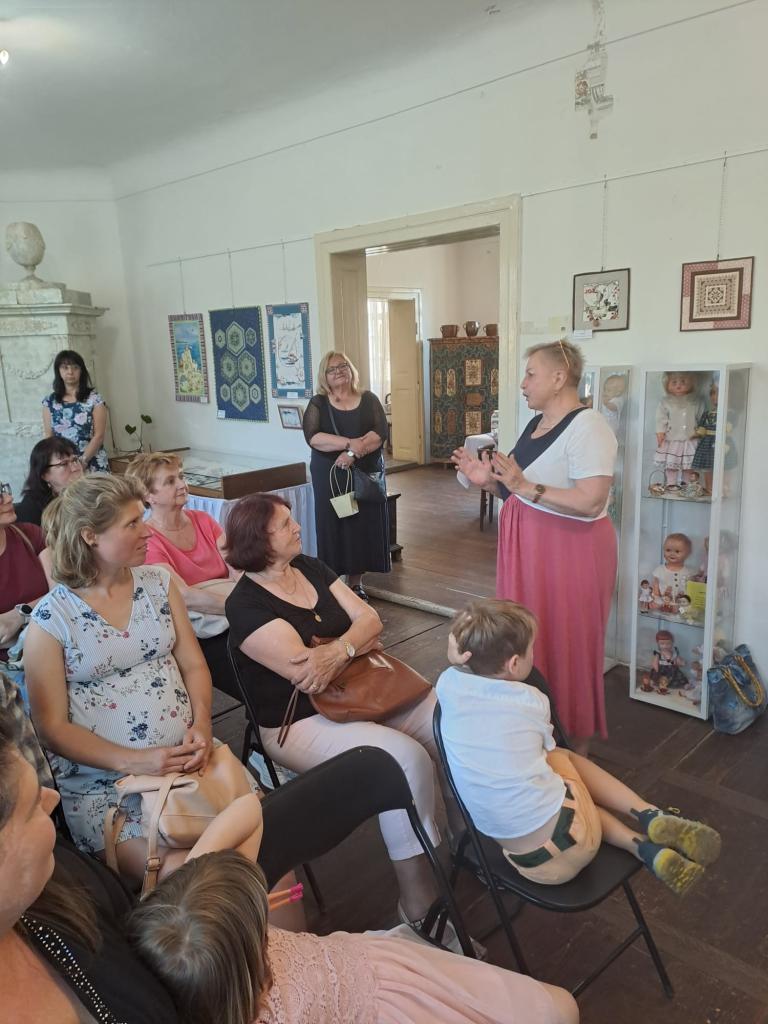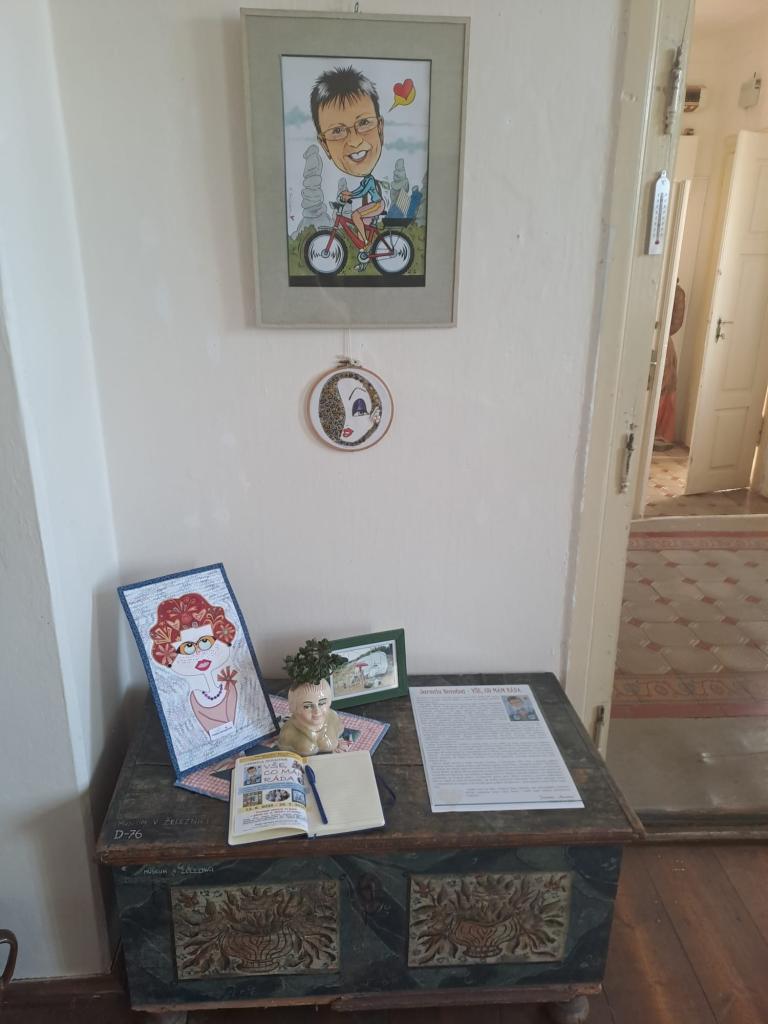 Výstava Jarmily Novotné Vše, co mám ráda (13. 6. – 29. 7. 2025) představila jak autorčiny patchworkové obrazy, tak vybrané exponáty z její sbírky panenek, porcelánových hrnečků a cukřenek, bižuterie, výšivek nebo paličkovaných krajek. Vernisáž proběhla v pátek 13. června 2025 v 17 hodin.